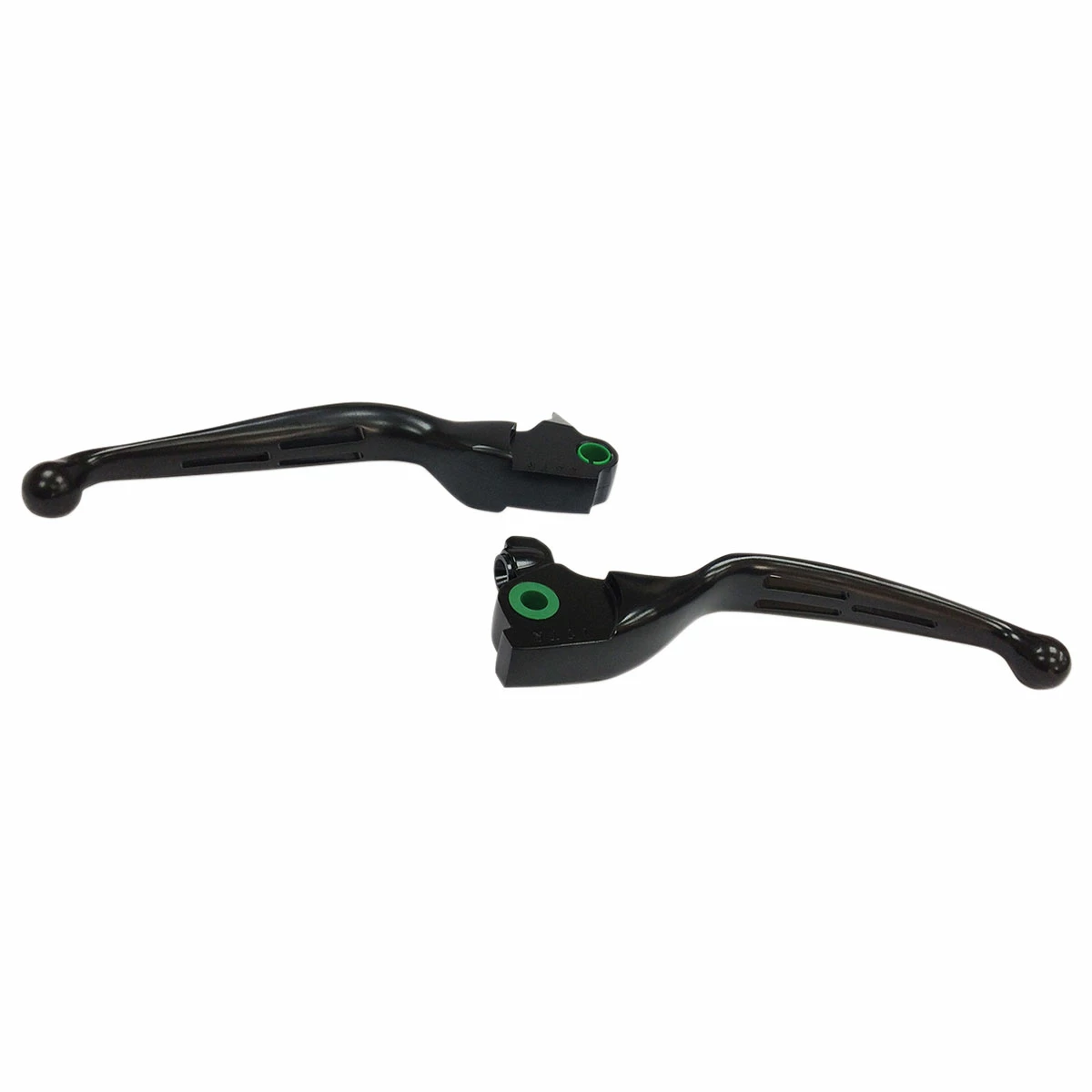 These lever sets are constructed of lightweight aluminum and resemble the late-style wide flat design. They come with a matte black finish and are compatible with OEM perches.