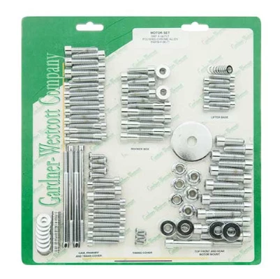 • Motor Sets include all Side Covers, Lifter Base Timing Plug, Inner Primary Mount, Top, Front and Rear Motor Mounts (with Stabilizing Link Fasteners on FXR and FLT Modls), Rocker Box Covers on Pan,Evolution and Twin Cams