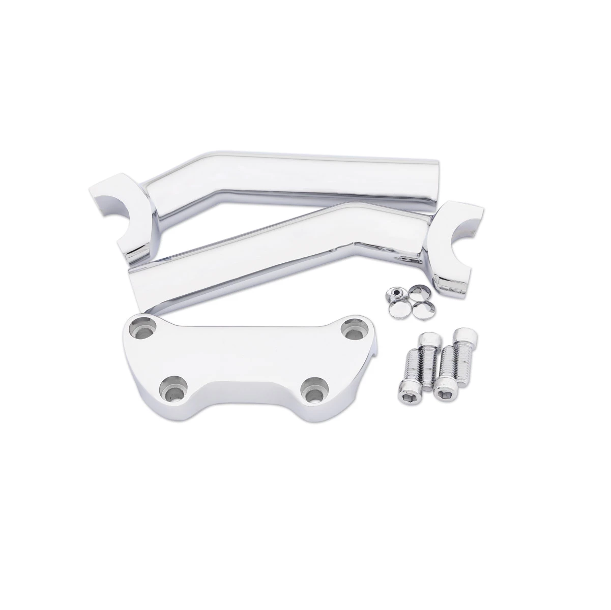 • Quality die-cast aluminum top clamp and forged aluminum risers duplicate the mounting of the stock clamp
