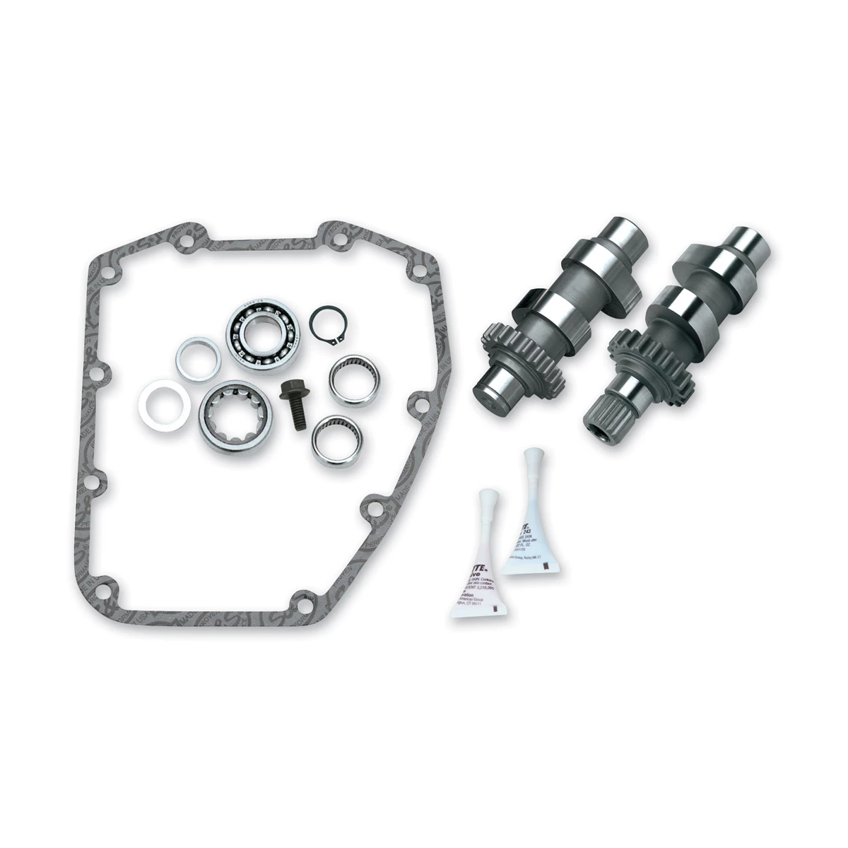 • Kit contains cams, gearcover gasket, cam bearings, and instructions.