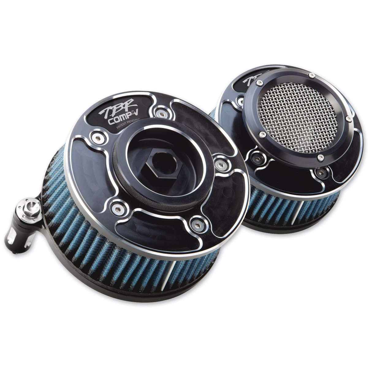 • 2-n-1 system gives riders the option to quickly change the threaded V-Stack for a direct air intake or threaded billet cap to bring in air through the high-flow air filter