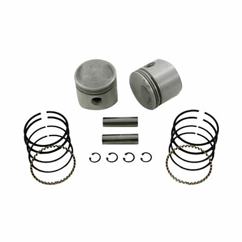 • Includes 2 cast alloy pistons, genuine Hastings 3-piece ring set, 2 wrist pins and 4 circlips